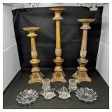 Lot #19 Vintage Candlestick Holder Collection, 9 Pieces, Brass & Glass / Crystal