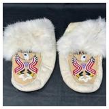 Lot #28 Handmade Alaskan Native Beaded Moccasins, Fur Trim Slippers, Vintage Souvenir