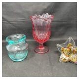 Lot #31 Hand Blown Art Glass Lot, Small Vase, Pink Ruffled Vase/Goblet, Glass Flower Sculpture
