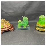 Lot #32 Asian Style Jade Glass Dragon Figurines & Jeweled Lucky Frog, Decorative Feng Shui Lot (3 Pieces)