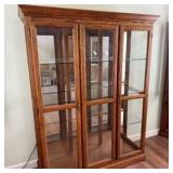 Lot #33 Vintage Oak Lighted Display Cabinet, Glass Curio Cabinet, 74.25 x 58 x 19.5 Inches