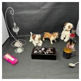Lot #40 Mixed Vintage Decor Lot, Asian Lacquer Box, Silver-plated Cup, Dog Figurines, Crystal Ornaments & More