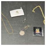 Lot #41 1927 Standing Liberty Silver Quarter Pendant Necklace, Sterling Chain & Religious Jewelry Lot