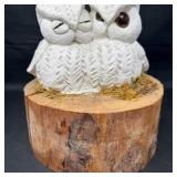 Lot #42 Handmade Pacific Northwest Owl Sculpture on Wood Base, Rustic Folk Art Decor