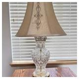 Lot #46 Vintage Crystal Table Lamp with Shade, Cut Glass & Brass Base, 26" Tall
