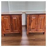 Lot #47 Pair of Solid Oak Side Tables, Cabinet Storage & Dovetail Drawers, 25" Tall