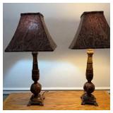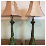 Lot #128 Pair of Vintage Green Toleware Cast Metal Table Lamps 30.5 Inch Tall