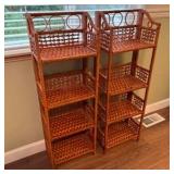 Lot #122 Pair of Wicker Rattan Shelving Units 44.5 x 15 x 9.5 Inches