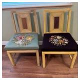 Lot #124 Pair of Mid Century Modern Chairs With Hand Embroidered Seats