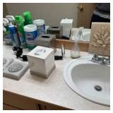 Lot #155 Bathroom Decor Accessories Lot - Soap Dispenser, Toothbrush Holder, Coasters, Cleaning Supplies