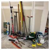 Lot #186 Large Garden Tools and Lawn Care Supplies Lot