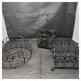 Lot #50 Set of 3 Wrought Iron Metal Baskets & Holder, Decorative Storage Rack