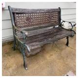Lot #211 - Outdoor Patio Bench with Cast Iron Frame and Wood Slats