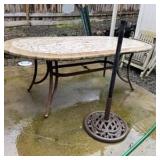 Lot #212 - Outdoor Patio Table Set with Mosaic Top, Umbrella Base, and Folding Chairs