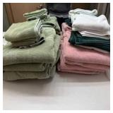 Lot #149 Mixed Towels Lot - Bath, Hand Towels, Washcloths, Green, Pink & White