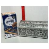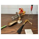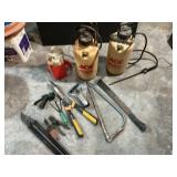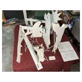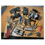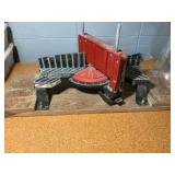 Spring Cleanout #2 Vintage Wood Quilt Blanket Towel Display Hanger Rack Floor Stand vintage-style handmade quilt features a colorful, vibrant floral print on one side and a classic Log Cabin pattern on the reverse. large antique copper cauldron or pot, Constructed from hammered copper with a rustic, wrought iron handle vintage Owens-Illinois glass carboy or water jug stainless steel stock pot designed for large-batch cooking of soups, stews, and stocks. of vintage 1950s aluminum kitchen canisters vintage military-style water pitcher and vintage metal storage or decorative basket collection of Kansas City Chiefs branded merchandise vintage 1-gallon glass sun tea jar featuring a colorful butterfly design and a plastic lid with a spigot. set of vintage Arnels ceramic wall decor featuring a spoon, fork, and ladle vintage hand-carved wooden serving tray featuring decorative ceramic tile inlays. vintage 1970's wall hanging and gray frog garden statue made of a concrete or stone-like material Cross Classic Century Lustrous Chrome Pen and Pencil Set vintage New Bright Holiday Express Animated Train Set vintage lantern-style bird feeder framed artwork features a photograph of the United States Air Force Thunderbirds and Micro-Trains Line #59060 N Scale 40' Steel Ice Reefer decorated for Fudgsicle Chicago & North Western (CNW) locomotive model produced by Atlas Model Railroad Co., Inc.. vintage HO scale (1:87) model train accessories and buildings Japanese musical jewelry box features a black lacquer finish with hand-painted scenes, including Mount Fuji, and a colorful recipe box Masonic Marquetry Panel vintage Plasticville "Country Church" model train accessory, likely from the CC-8 or CC-9 series introduced in the 1950s vintage, silver-plated covered serving dish and a vintage glasbake vintage- G Gauge (Large Scale) model train cars. vintage- G Gauge (Large Scale) model train cars. vintage- G Gauge (Large Scale) model train cars. vintage- G Gauge (Large Scale) model train cars. vintage- G Gauge (Large Scale) model train cars. g scale train track and controller g scale train track and controller Danbury Mint pewter model of a steam locomotive based on the "Chattanooga Choo Choo" train. Wimbley Designs rattan charger plates featuring a braided texture in a brown finish. Wimbley Designs rattan charger plates featuring a braided texture in a brown finish. 6 ft wrought iron ornament display tree various vintage or used kitchen utensils and tools Antique or vintage hammered, copper or brass charging plate plate chargers vintage, handcrafted turned burl wood plates set of decorative charger plates collection of various fabrics 36 stainless steel Magnetic spice jars various quilting fabric collections and material several placements and material HouseCalls-branded kitchen set including a cutting board and dish towel, along with a wooden cheese board set and silver place card holders. clock & matching mirror A wall clock and decorative cat pictures, decor Vintage large aluminum stock pot and a vintage galvanized metal pail. miscellaneous kitchen items 19” Barnyard Vintage Pepsi products a collection of trimmer string & accessories vintage handmade wooden tool carrier caddy recessed light and light fixtures big boy tools Craftsman Industrial Deluxe Dovetail Fixture (model 9-25450) blades 2” trailer hitch balls, nail-on furniture glides A live center, orange suction cups, aluminum louvers or vents drywall tools weatherstripping sandpaper and lots of it hoist and small pulleys Kirkhill Cone & Bonnet Packing Assortment, vintage Kirkhill Stem Packing Assortment kit pet leashes and tie downs 10 vintage c-clamps a lot of Drillbits 25-drawer hardware storage organizer cabinet box full of a variety of nails and fasteners various hardware items and tools concrete drive tool, masonary blades and a Vermont American Angle Drive Kit brand new bathroom faucet, Fimco 5275088 High-Flo 12V Diaphragm Sprayer Pump and more variety of hand tools variety of hammers Black and decker router, sander and a drill. Bern’s o matic, welder/solder and a shield Chicago Electric Power Tools 1.3 Amp Variable-Speed Rotary Tool Kit and a Craftsman Laser Trac leveling tool. Worx weed trimmer and an electric black and decker hedge trimmer vintage hand drills, Millers Falls hand drills and an antique chest drill collection of industrial caster wheels lots of sockets, open ended wrenches and more combination wrenches of various sizes, Fineline brand adjustable wrench pocket knives storage containers and screws, nuts and bolts 38-drawer hardware storage organizer with hardware. 60-drawer hardware storage organizer with hardware. Electrical miscellaneous tools pipe straps, joist hangers 10” genuine hardwood hand screws, and kneepads Wagner heat gun and a Chicago Cut out tool. power tools vintage sears router, doweling jig and other tools Central Pneumatic 40 lb. Portable Soda Blaster mystery boxes Andersen basement removable glazing panel oxy-fuel cutting and welding torch set with twin hoses various saws various saws Central Pneumatic 50 ft. x 3/8 in. PVC Air Hose white plastic cover is designed to protect dual propane tanks on an RV or trailer Vintage wooden butter churn VINTAGE WOODEN NAIL KEG Vintage banks decorative Christmas gnome figurines framed artwork is a limited edition print titled "Little Darlin'" by artist Robin B. Marshall framed decorative art print featuring characters from the 1940 Walt Disney animated film Pinocchio Walt Disney "Mr. Mouse Takes a Trip" Limited Edition Serigraph Cel featuring Mickey Mouse and Pluto. Fisher-Price Little People The Three Wise Men playset Fisher-Price Little People The Inn at Bethlehem playset Fisher-Price Little People Nativity Set vintage costume jewelry lot vintage costume jewelry lot vintage pearl jewelry items collection of vintage gold-tone jewelry, including decorative sweater clips, a long tassel necklace, a scatter pin, and matching rose-shaped buttons collection of vintage jewel