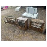 FURNITURE* Nice Antique Dresser with pedestal Mirror, Oak Dresser, 3 Assorted Antique Dressers, Large Antique Dinning Table w/6 Chairs, 2 Leaves and Pads, Antique Tilt-top Dining Table, 2 Chinas Cabinets, Antique Mahogany Wardrobe, Nice Settee, Vintage Sofa, Electric Recliner, Nic Vintage Chase Lounge, Wicker Chase Lounge, Fabric Parlor Chair, Pair of Pie Crust 2 Tier Stands, Nice Mahogany Shelf, Round White Coffee Table, Round End Table, Drop Leaf Coffee Table & End Table, Large Heavy Coffee Table, Ornate Wood Chair, 2 Round Cane Bottom Chair, 2 Square Cane Bottom Chairs, Eastlake Chair, 3 Bar Chairs, Assorted Chairs, Nice Small Desk, Wall Hung Display Cabinet, Childs Lifetime Picnic Table, Pair of Adirondack Chairs, Antique Brass Bed, Antique Rope Bed, Wood Twin Bed, Pair of Wood Twin Head Boards, King Size Head Board, Modern Mirror Queen Bed w/Cloud Mattress, Pair of Mirror Night Stands, 3 Night Stands, 2 Trunks, Army Foot Locker, Pair of Stools, Baby High Chair, Barley Twist Oak Book Stand, Magazine Rack, Assorted Wine Racks, Shoe Racks, Table top Bible Podium, Assorted Mirrors, Several Area Rugs, Patio Table, Office Chair, Small Child Stuffed Chair, File Cabinet, Bed Side Rails, Pair of Rattan Shelves, Thick Square Glass Table Top, and More!