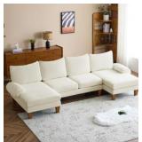 Winado - 110" Sectional Couches Chenille Upholstery U-Shape 4 Seat Sofa Set with Double Chaises & Wood Grain Legs for Living Room - White