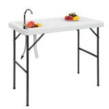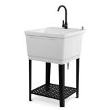 ROVSUN 24" x 24" Plastic Utility Sink with Storage Shelf White