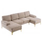 Are you looking for a comfortable sofa for your family? If so,this U-Shaped 4-Seat Indoor Modular Sofa is highly recommended to you. This modern sofa can provide ample seating when guests are over, perfect for a small space and easy to lay down on for a nap. Small space reversible sectional sofa. The cushions you sit on are nice and firm. You'll never have to worry about sinking in. The more you sit in it the better.The product is 2 packages in total.