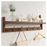 Kindly Two-In-One Function: The thoughtful design allows this wall hooks to have two functions; This cute wooden coat rack wall mount can be installed in your bedroom, entrance, bathroom, to store keys, umbrellas, school bags, hats, coats, etc; The top shelf can display photo frames, envelopes, plants, decorative letters, keys, etc