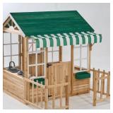 Outdoor Playhouse for Kids 4-8, Toddler Wooden Playhouse with Play Kitchen, Snack-Bar, Gardening Kit for Girls Boys, Play House with Fence, Jungle Green