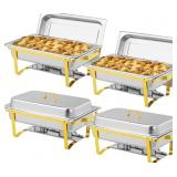 ROVSUN 4 Pack 9QT Chafing Dishes for Buffet, High Grade Chafing Dish Buffet Set with Food Pan, Water Pan, Fuel Holder for Party - Gold & Silver
