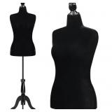 Bonnlo Female Dress Form Pinnable Mannequin Body Torso with Wooden Tripod Base Stand (Black, 10-12)