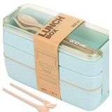 *5 PACK* GREEN Stackable Bento Lunch Box Kit, 3-In-1 Compartment Wheat Straw Lunch Containers with Tableware, Reusable On-the-Go Meal and Snack Containers