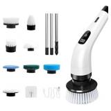 Electric Cleaning Brush Cordless Spin Scrubber with Replaceable Brush Heads Multifunctional Household Rotating Cleaning Machine(C)