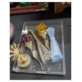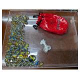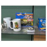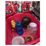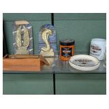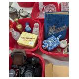 Silver coins, Uranium glass, Harley Davidson collectibles and Barbie's, Jewelry, Marbles, Wheat pennies, Halloween blow molds, banks, lots of bottles, Avon bottles, Hummels, David Mann motorcycle art, Vintage Harley bikini underwear, never used. Pokemon cards, Craftsman tool chest, Art Deco electric smoking stand ashtray.