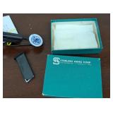 Firearms include: Wm. Moore & Co. SxS double barrel 12 ga shotgun H&R 12 ga shotgun Remington Wingmaster 870 20 ga shotgun Smith & Wesson Model #65 357 magnum revolver Sterling Arms 25 auto hand gun Sig Sauer P230 9mm hand gun Traditions Inc black powder gun