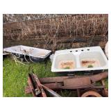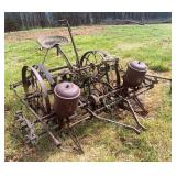 Early 60s GMC pickup bed trailer, 2 – JI Case two-row horse drawn corn planters (parts),