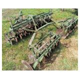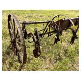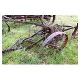 Horse drawn cultivator, 2 – old drag type disk, rotary hoe, lot parts mowers push & riders,