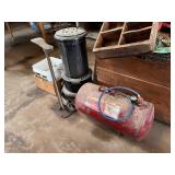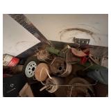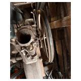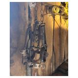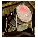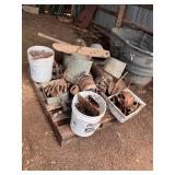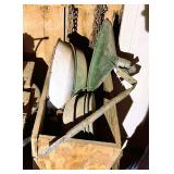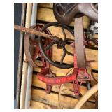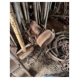 homemade blacksmith forge, Louden iron claw loose hay fork, post vise, misc. pulleys, corn sheller,