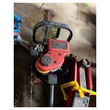 Homelite gas hedge trimmers, Stihl gas leaf blower, 2075 & 2150 Poulan chain saws,