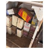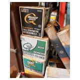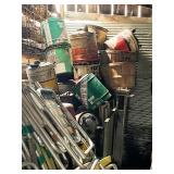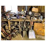 5+ new cases of oil (Mobil-1, Quaker State & Valvoline), lot long handled tools,