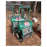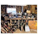 Craftsman 6” Planer, lot hardware, miter saw stand, Lot air compressors, pedestal grinder,
