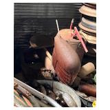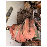 2 – western saddles, set of 4 early 60s Corvette hub caps, Lot glass jars, lot canning jars,