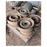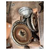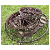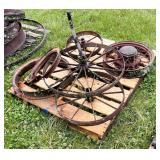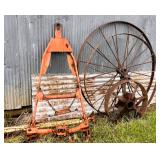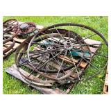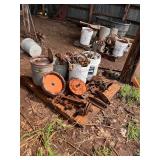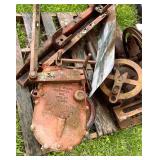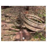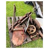pitcher pump, 2 – pump jacks, lg lot metal spoke implement wheels, Old Ford running boards,