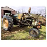 OLIVER 1550 gas tractor w/loader (bale spike - bucket) & narrow front end, Allis-Chalmers WD tractor (runs),