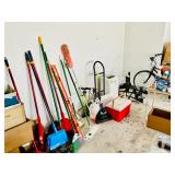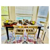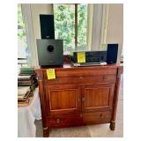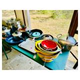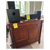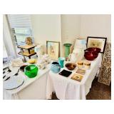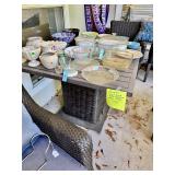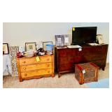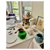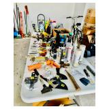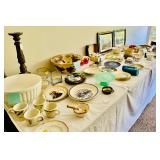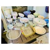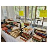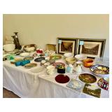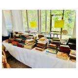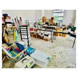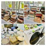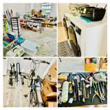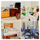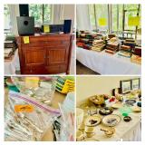Table Full of Old Books, French Armoire, Cherry Furniture, Sofas, Loveseats that are worn, but very low price! Amish Windsor Chair, Electric Wall Clocks, T.V,, Stereo Systems, Art, Full Size Bed, Linens, Towels, Antique Chest, Sterling, Vernon Kilns "Monterey" pattern 59 pieces, Royal Erias China, Whirlpool Washer & Dryer, Ladies "Fito" & Schwinn Searcher C9 Bike, Bike Carrier, Yard Tools. Plastic yard cart, Nice Outdoor Patio Furniture, Cleaning supplies, Beach chairs, Nice Pottery Pieces, and more!