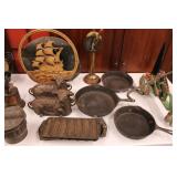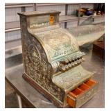 | Outstanding collection of cobalt-decorated stoneware, 60+ Pieces; Six original Leslie Cope oil paintings; Collection of large cast iron floor model coffee mills; Advertising including a large vintage public telephone lighted sign; Selection of Edison phonographs; Large collection of antique clocks, various styles & models; Amish horse-drawn buggy; Vintage toys; Griswold Skillets & No. 8 Warne iron; Antique National cash register, rare small candy store model; Vintage full-size cow head, dairy advertising display; Original 1969 concert flyer Jose Feliciano & Led Zeppelin, Athens, Ohio; 4-Stack quarter sawn oak barrister bookcase with glass doors; Plus much more! |