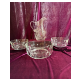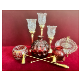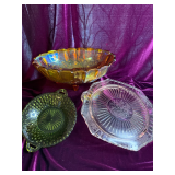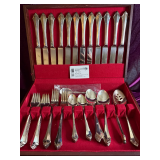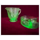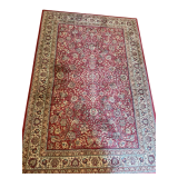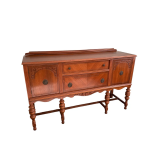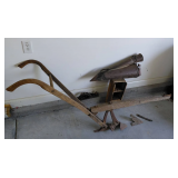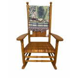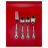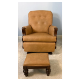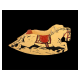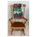 Featured lots: Four Post Queen Bed w/ Bedding Mahogany Colored (63x84x72); Set of Vintage Solid Sterling Silver Gorham Salt & Pepper Shakers; Tan Leather Rocker & Matching Footstool; Vintage Sideboard with Ornate Carving; Vintage Tool; Vintage Uranium Creamer and Divided Relish Dish; Vtg. “Flowering Snowball” Patchwork Quilt; Vtg. 1950’s Painted Wooden Child’s Rocking Sleigh Horse; and more!