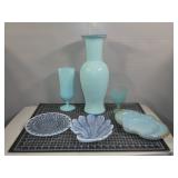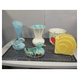 Over 400 Lots, Including: Mid Century Modern collectible glassware with art glass decorative pieces, with forms and colors from the 60s and 70s! Makers include Blenko, Viking, LE Smith, Murano/Italian Style, Fenton, Fostoria as Slump Catch Trays, Slung Vases, Genie Decanter Bottles and more in colorful Orange, Gold, Green, Amethyst, Blues and many hues. Plus Ceramic, Pottery and Fiestaware, Vintage Kitchenware, Macrame and Craft Items, Costume Jewelry, Tonka Trucks & Matchbox Cars, New Vintage Christmas and so much more!