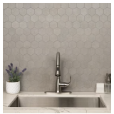 - Crafted from premium porcelain, this mosaic tile boasts a timeless gray backdrop, lending an elegant charm to any setting. Its hexagonal mesh-mounted design ensures a seamless installation process, catering to both indoor and outdoor applications.