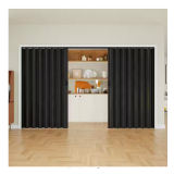 - The 120 in. x 80 in. Black Woodgrain Vinyl PVC Accordion Door is a practical, space-saving solution for dividing rooms or covering wide openings in interior spaces. Designed with a flexible folding (accordion-style) system, it opens smoothly and stacks compactly to the side, making it ideal for areas where a traditional swinging door would take up too much space. The black woodgrain finish gives it a modern, decorative look that works well in closets, laundry rooms, pantries, or room partitions.