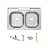 (116) 33 in. Drop-In 50/50 Double Bowl 20 Gauge Stainless Steel Kitchen Sink with Faucet