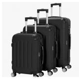 3 Piece Luggage Sets ABS Trolley Case, Suitcase with Spinner Wheels, Large Luggage for Family Travel & carry on 20" / 24" / 28" (Black)