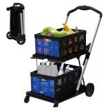 KEDSUM 2 in 1 Shopping Carts for Groceries, 330 lbs Grocery Cart on Wheels, Foldable Utility Carts with Wheels, Hand Truck with Waterproof Tote Bag for Shopping, School, Laundry, Craft Show, Black